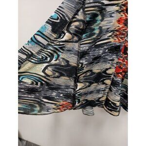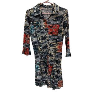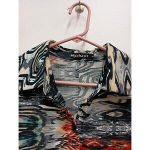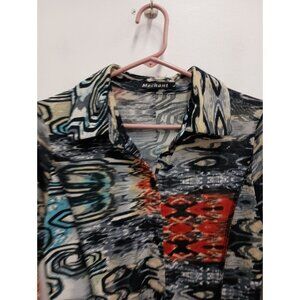 Mechant Womens Wearable Art Tunic Top Large Abstract Mesh Button Up 3/4 Sleeve