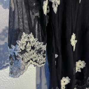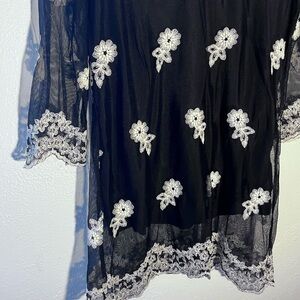 MechantBlack & White Sheer Lace Embroidered Dark Romantic Top Size M NWT
