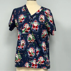Med Couture Christmas Santa Cookies Winter Novelty Print Scrub Top Sz L Scrubs