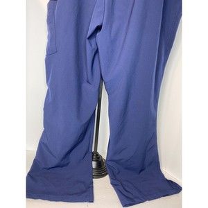 This pair of maternity pants is designed for women in the medical industry. Made with polyester material, it features a solid blue color and is sized as Large. The 4 WAY ENERGY STRETCH technology ensures maximum comfort for the wearer. The brand is Med Couture and it is crafted in China. Ideal for professionals who are looking for a comfortable and stylish outfit, these pants can be worn as uniform or work clothing. No issues spotted Please see all pics to see the condition of this item If you have any questions please message me. Thanks again Ships fast