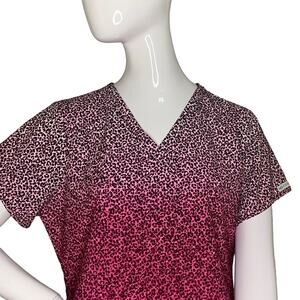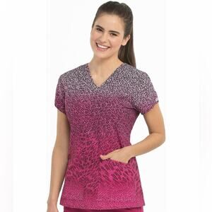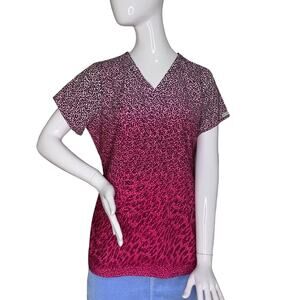 Med Couture Scrub Top Sky High Animal Print Front Patch Pockets V-Neck Size M