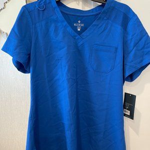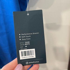 Med Couture Touch Tuck In Chest Pocket Scrub Top. Size medium in royal blue. Item is new and without any defects or stains.