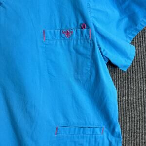 Med Couture Womens Scrub Top Size 3X Blue EZ Flex Short Sleeve V Neck Medical