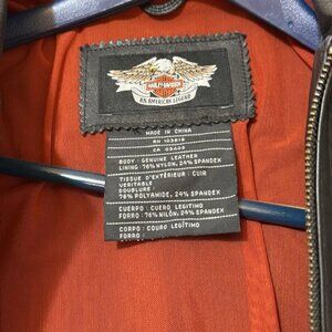 I LOVE THIS JACKET, but my ex. bought it for me so now it is paying for a divorce (lol) This is a beautiful lightweight leather coat that has been worn a couple of times. It has lace-up sides and laces up the middle of the back for maximum comfort and can be adjusted depending on your shirt. The sleeves unzip to reveal angel sleeves. The coat has no stains on the the inside or outside. There are leather patches under each armpit for more durability and has the leather on the hips on the bottom inside the which also protects the lining. The front zipper zips two ways so you can unzip from the bottom up or top down. According to the HD sizing chart, a women's medium has the measurements listed below: