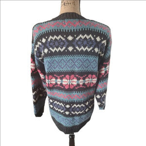Excellent preowned condition Woods & Gray button-up V sweater. Beautiful rural Shepard design and popping colors. All buttons intact. One small thread on sleeve coming out but hardly noticeable. Size Medium.