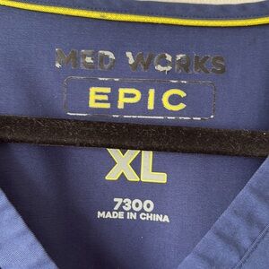 Comfortable blue scrub top with short sleeves and two front pockets. Ideal for healthcare professionals.