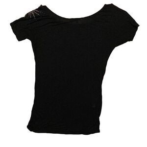 100% modal is soft and lightweight. Sheer top pairs well with a tank underneath or really pops with a bralette