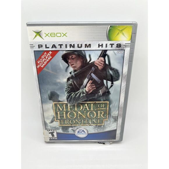 Immerse yourself in the action-packed world of Medal of Honor: Frontline for the Microsoft Xbox. This Platinum Hits edition comes complete in box and includes a manual, multiplayer feature, and is rated T for Teen. Join the ranks of the Medal of Honor Series and experience the thrill of this iconic shooter game.