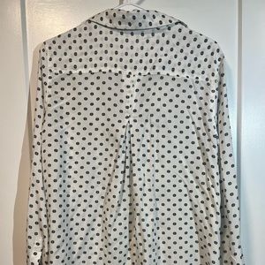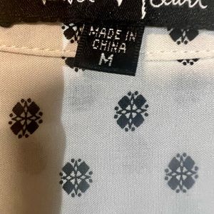 Boho/medallion patterned black and white button down blouse. Great for layering! It’s got beautiful and light material