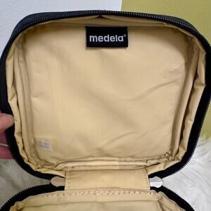 Preowned Medela brand breastmilk storage and transport bag - includes black insulated bag with double zipper top and contoured blue icepack. Designed to be compatible with and fit 4 5 oz medela breastmilk bottles. Bottles are not included!