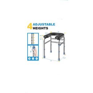 [ERGONOMIC U-SHAPED SEAT] - Our adjustable shower chair is designed with a unique u-shaped seat cushion crafted from premium leather, soft sponge, and a durable molded wood core for enduring comfort. The U-shaped cutout seat offers unobstructed access to the perineal area for easy and effective washing. The extra-large u-shaped seat prevents water buildup, ensuring a clean and hygienic shower environment.