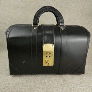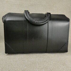 Medical Doctor Bag Leather Black Professional Euro Style w/ Removable Strap Key
