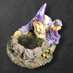 Step into the realm of fantasy with this Medieval Legends Merlin figurine, new in its original box. The wizard Merlin is depicted in a shimmering purple robe, kneeling at a stone pond and holding a crystal ball, as if casting a spell or gazing into the future. This detailed resin piece captures the magic of myth and legend, perfect for collectors of wizards and fantasy décor.