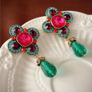 Medieval Modern Gold Plated Rhinestone Colorful Gemstone Earrings