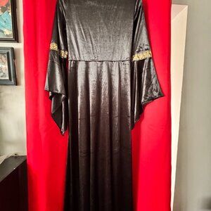 Medieval Renaissance Costume Black Velvet with Gold Trim Cosplay Gown
