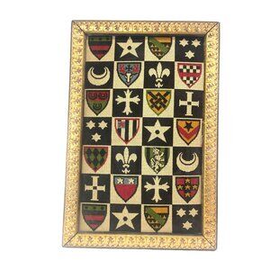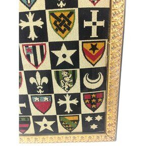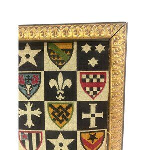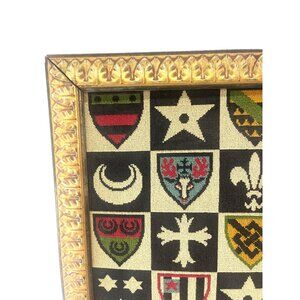 Medieval Shield Heraldry Needpoint Vintage Wall Hanging Framed