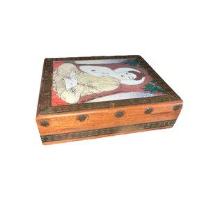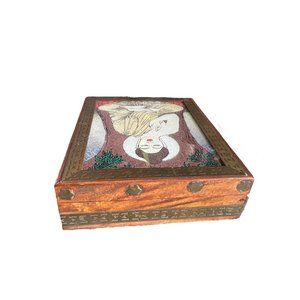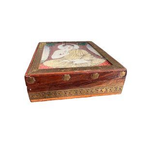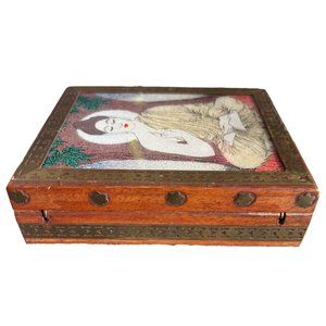 Meditative Buddha Lotus Wooden Trinket Box Made With Crushed Gemstones