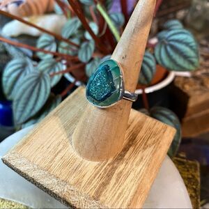 Mediterranean Green Carved Aura Druzy Sterling Silver Size 6.5