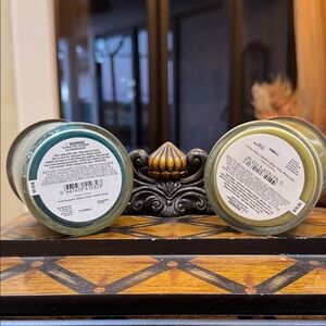 Stylish candle duo with teal and olive hues. Enhances any room with a luxurious scent.