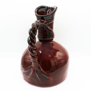 Mediterranean Style Ceramic Pottery Pitcher Burgundy Red 10" Braided Rope Handle