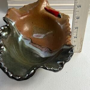 Medium 10" Abstract Art Studio Pottery Bowl Crimped Wavy Rim Brown Earth Tones