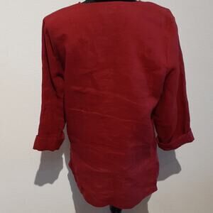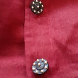 Exclusive medium 100% linen jacket top (dark maroon color). Brownish black cool buttons.