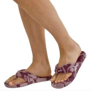 Medium (7-8) - VERA BRADLEY - Soft Slippers Plum Burgundy Fleece Flip Flop NEW