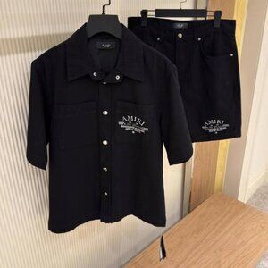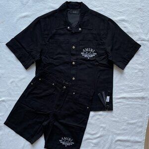 Medium Amiri Denim Men's Black Shirt And Short Set Comfort Fit