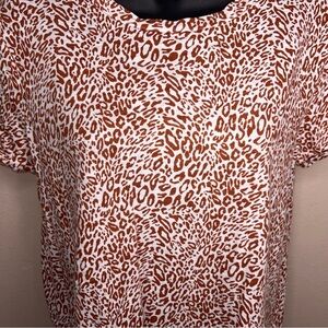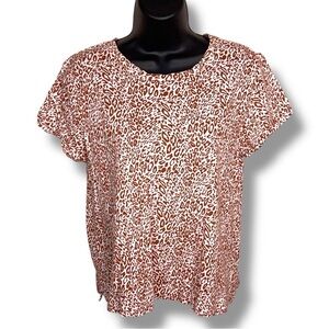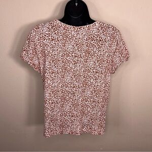Medium Ann Taylor LOFT White Brick Leopard Print Short Sleeve Casual Comfortable