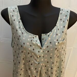 Medium Ann Taylor Loft sleeveless v neck slightl flared hem polka dot/leaf shirt