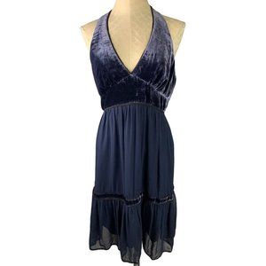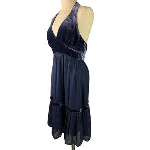 Medium BCBG Max Azria Purple Navy Halter Style Velvet Dress Silk Blend