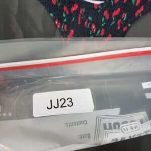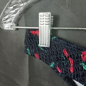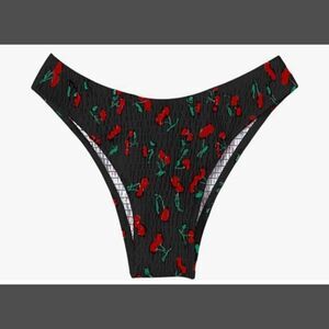 Medium Black Red Cherry Print Bikini Bottom High Rise Thin Side Cheeky Swim Suit
