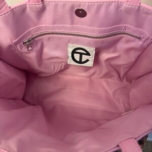 This iconic, unisex shopping bag by Telfar in this size and color is currently sold out online. It is super practical and makes any outfit pop.