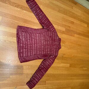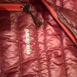 Worn for one season, patagonia women's medium down sweater by Patagonia. Color is burgundy. While it is a light down jacket, it keeps user quite warm and can be used under a ski coat for addtional warmth.