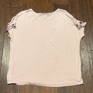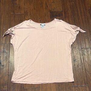This stylish women's top features a soft pink hue and trendy tie sleeves, perfect for a casual yet chic look.