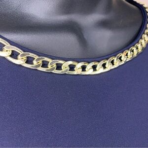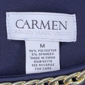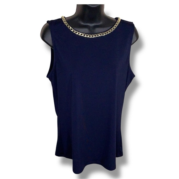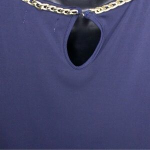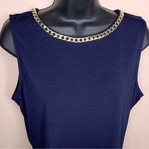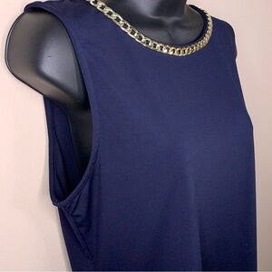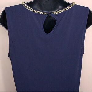 Medium Carmen Marc Valvo Navy Blue Gold Chain Neckline Sleeveless Top