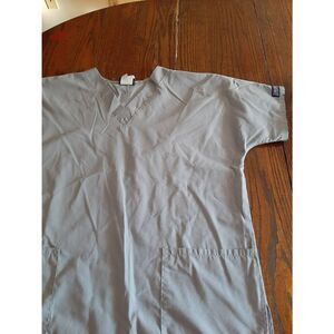 Good Used Condition Women's Size Medium Grey Cherokee Workwear Scrub Top Shirt- Short Sleeve V-Neck Side Slit