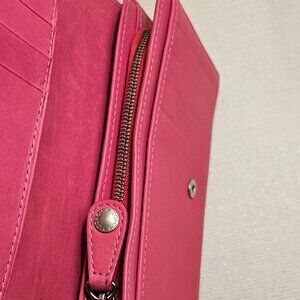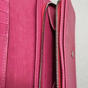 Never used medium coach leather wallet with card slots, bill slots and zippered coin pocket.