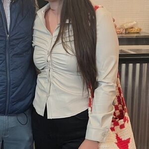 Medium Cream Ruched Button Up