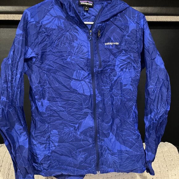 Medium Women's Patagonia Houdini Jacket. Only worn about 5 times and in great condition. Color is dark blue with a leaf pattern. Love the color but not the fit on myself.
