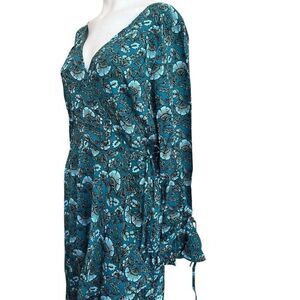 Medium Deep Teal Aqua Floral Faux Wrap Maxi Dress Hi Low NEW Band Of The Free