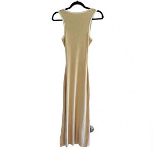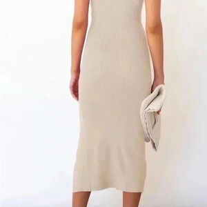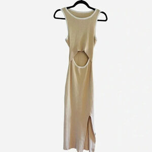 Tan with cream trim ribbed bodycon dress is a size Medium.
