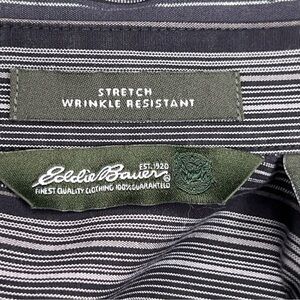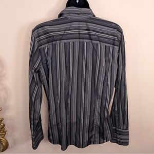 Medium Eddie Bauer Grey Striped Button Front Top Womens Long Sleeve Silver