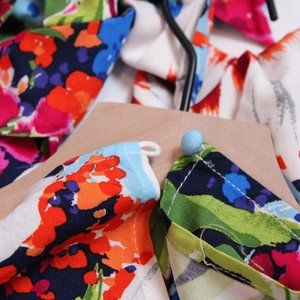 Made of 100% Rayon floral print cross tie romper with lower back zipper and neck button. Super cute for parties, get togethers, and/or any other fun event! Super soft and comfy!
