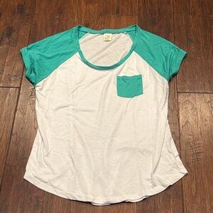 Medium Green and White Raglan Short Sleeve Tee