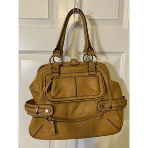 Medium JESSICA SIMPSON Gold Faux Leather Shoulder HANDBAG Distress. Condition is "Pre-owned". Some distress throughout . Please see pictures. Shipped with USPS Priority Mail.