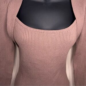 Medium Lillusory Beige Ribbed Knit Top Long Sleeve Neutral Stretch
