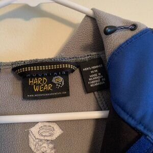 This is a great lightweight blue jacket. It is both trendy and functional. Mountain Hardware is a solid brand that will last you a long time! Zippers all work, and it is ready to go on some more adventures!