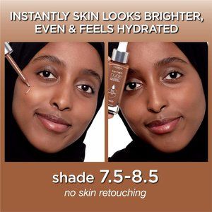 Tinted Hydrating Serum Vegan Foundation: Formulated with Hyaluronic Acid to leave skin smoother and more hydrated, plus luminous mineral pigments for lightweight coverage and to brighten complexion