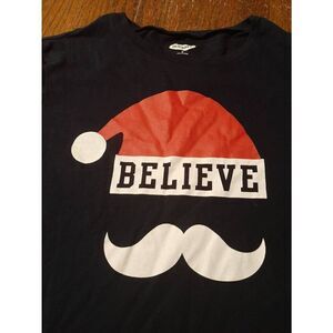 Good Used Condition Men's Size Medium Old Navy Short Sleeve Crew Neck Navy Blue with Red and White "Believe" Santa Holiday Christmas Tee TShirt Top.